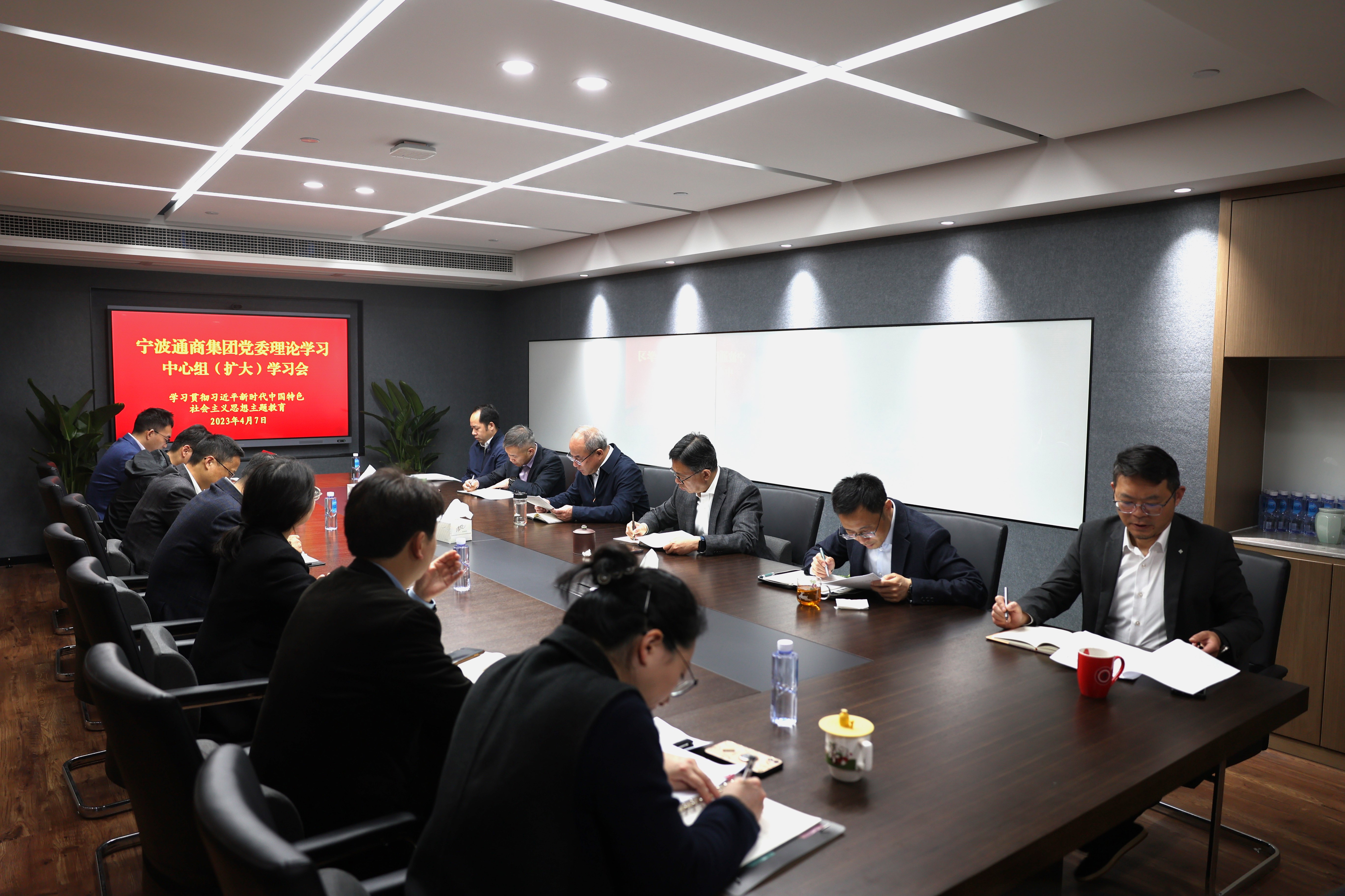 4月7日上午,宁波通商集团党委召开理论学习中心组(扩大)学习会,第一时间传达学习中央、省、市关于深入学习贯彻习近平新时代中国特色社会主义思想主题教育的有关会议精神和要求,研究贯彻落实方案。集团党委书记、董事长宋达军主持会议并讲话,集团领导班子、部门及子公司负责人参加。